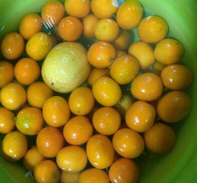 用料:金桔1000克、新鲜柠檬一个、糖300克、清水150毫升、食盐2勺。
