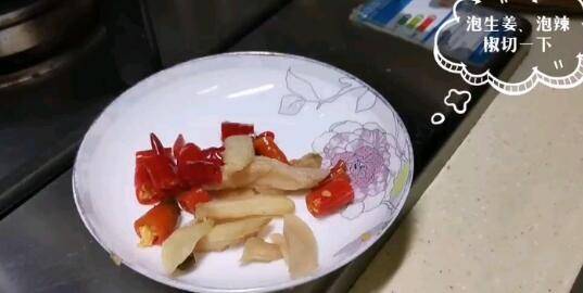 1、泡生姜泡辣椒切段,木瓜洗净去籽切块焯水。