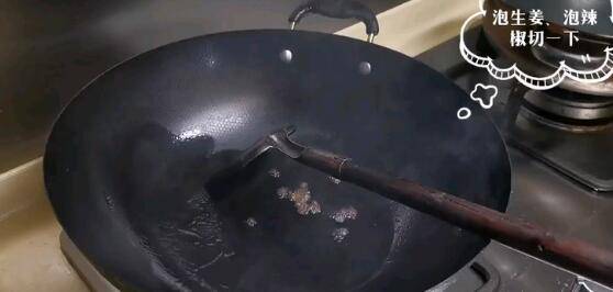 2、炒锅中放油,油热后放入花椒粒煎一下。