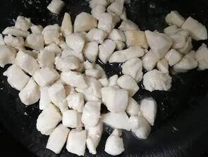 2、鸡脯肉切块,加入鸡蛋、面粉、淀粉、水、鸡粉、食盐拌匀腌制15分钟。