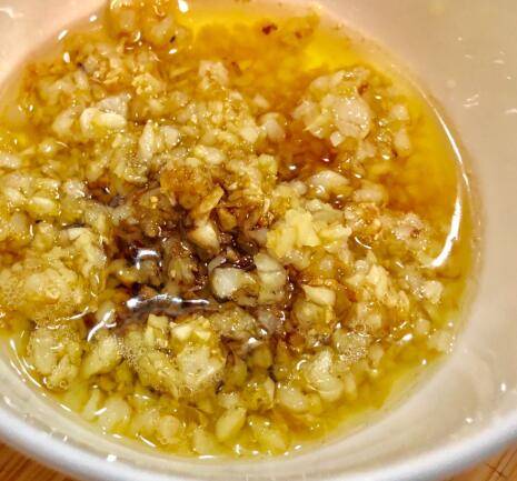 炒好的蒜蓉放入一勺生抽、2g盐、1g糖提味,一勺香油,搅拌均匀,备用。