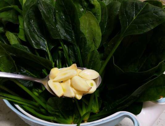 菠菜适量、蒜头3片、盐适量、油适量。
