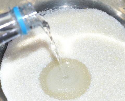 将大蒜瓣去皮,生姜洗净,切片待用,将称好的白糖倒入面盆中,再加入一瓶(500ml)白醋。