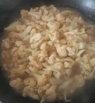3、放入菜花、盐,还有酱油,起锅装盘。
