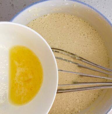 加入牛奶搅拌均匀,筛入低粉拌匀。