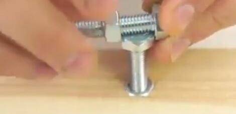 使用一枚长一点的螺丝钉,外加一个螺帽;将螺丝钉跟螺母套上去;然后转动;先放上去;螺丝上紧;感觉受力之后,逆时针扭即可。