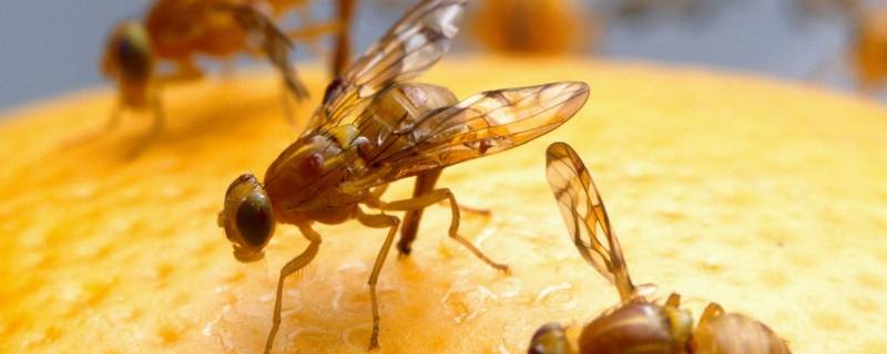 食物上的小飞虫是果蝇。果蝇属于小型蝇类,体长1.5-4毫米间。虫体以黄褐色者居多,也有些是黑色的。头部有一对大而多呈鲜红色的复眼,两复眼内侧有三对眼缘刚毛,复眼间的后头中央微微隆起,形成一个单眼三角区,三个单眼的前下方生有一对单眼刚毛。