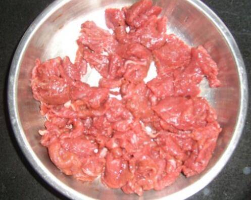 牛肉洗净后,切片备用。