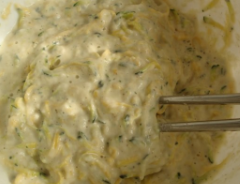 放入面粉,加水搅拌成厚面糊。