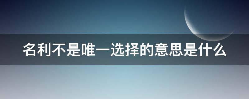 名利不是唯一选择的意思是人生中不只有名利可以追逐,还有其他美好的东西值得追求。名利的意思是谓名位与利禄、名声与利益。名利的确能够给人带来巨大的物质利益,但如果过分地追名逐利,就会给自己带来无尽的烦恼。名利不是人生唯一的选项,人生应向内寻求心灵的舒适和坦然,而不是依赖于外物的满足与麻醉。一个真正成熟的人,不是抛弃名利,也不是汲汲于名利,而是在其中来去自在,不为之所累,亦不为之所惑。陆游有言:脱尽利名缰锁,世界原来自大。
