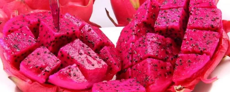 1、火龙果从中间切开。2、用勺子柄部把火龙果沿着边缘划一圈,底部也要划出来。3、用刀把火龙果切成小方块,再倒在盘中即可。