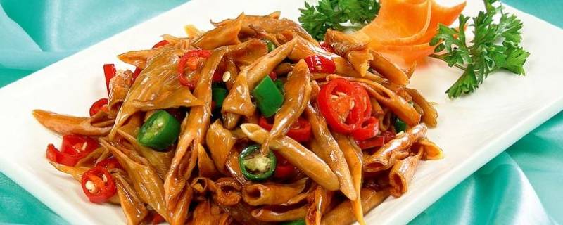 豆角炒鹅肠:豆角400g、鹅肠150g、姜2片、盐适量。