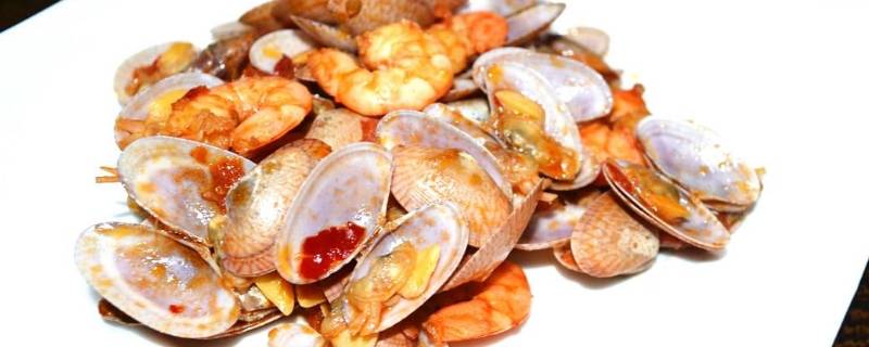 加入洗干净的花甲爆炒,待花甲大部分开始开口,加一勺料酒烹腥。