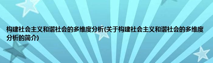 大家好,构建社会主义和谐社会的多维度分析,关于构建社会主义和谐社会的多维度分析的简介很多人还不知道,现在让我们一起来看看吧!