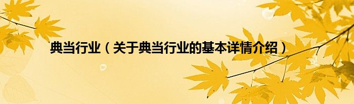 本文关于典当行业的基本详情介绍就讲解完毕,希望对大家有所帮助。