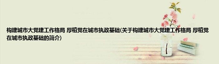 本文关于构建城市大党建工作格局,厚植党在城市执政基础的简介就讲解完毕,希望对大家有所帮助。
