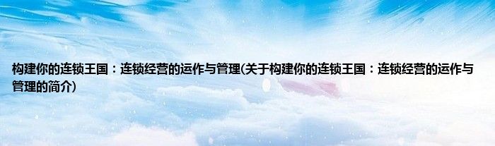 本文关于构建你的连锁王国:连锁经营的运作与管理的简介就讲解完毕,希望对大家有所帮助。