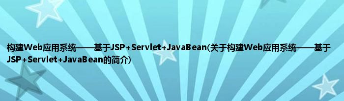 本文关于构建Web应用系统——基于JSP+Servlet+JavaBean的简介就讲解完毕,希望对大家有所帮助。