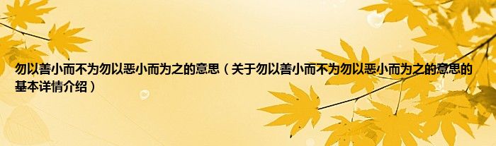 本文关于勿以善小而不为勿以恶小而为之的意思的基本详情介绍就讲解完毕,希望对大家有所帮助。