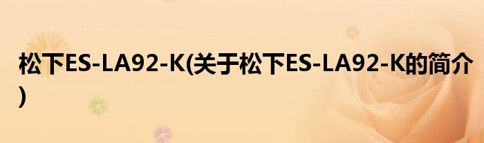 大家好,松下ES-LA92-K,关于松下ES-LA92-K的简介很多人还不知道,现在让我们一起来看看吧!