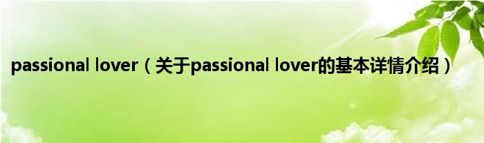 本文关于passional lover的基本详情介绍就讲解完毕,希望对大家有所帮助。