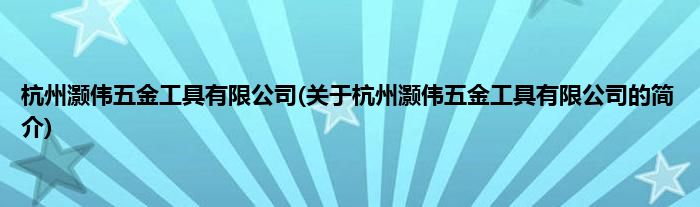 本文关于杭州灏伟五金工具有限公司的简介就讲解完毕,希望对大家有所帮助。