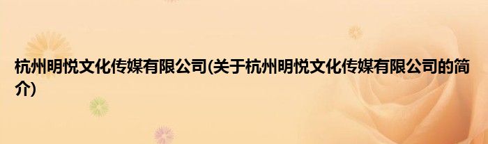 本文关于杭州明悦文化传媒有限公司的简介就讲解完毕,希望对大家有所帮助。
