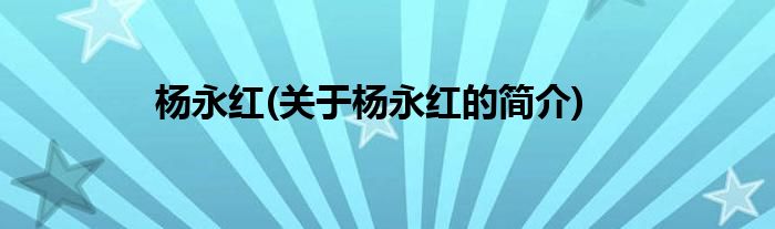 本文关于杨永红的简介就讲解完毕,希望对大家有所帮助。