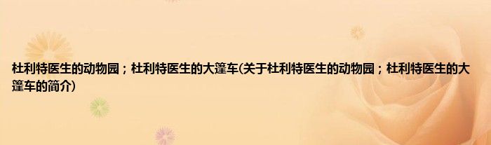本文关于杜利特医生的动物园;杜利特医生的大篷车的简介就讲解完毕,希望对大家有所帮助。