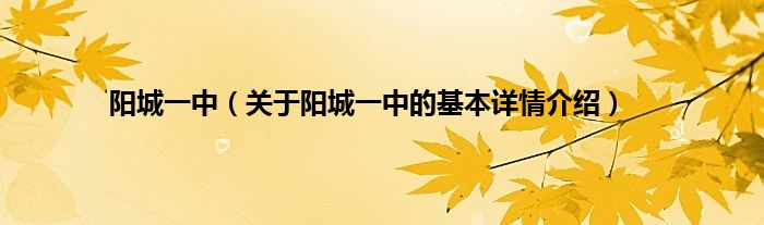 本文关于阳城一中的基本详情介绍就讲解完毕,希望对大家有所帮助。