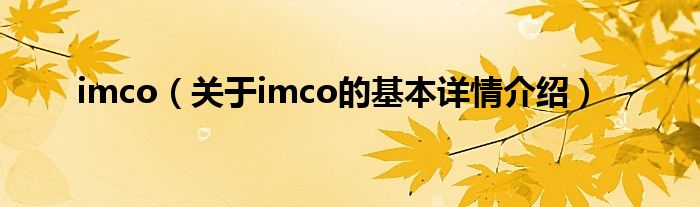 本文关于imco的基本详情介绍就讲解完毕,希望对大家有所帮助。