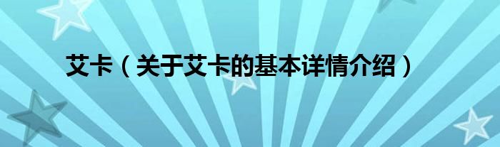 本文关于艾卡的基本详情介绍就讲解完毕,希望对大家有所帮助。