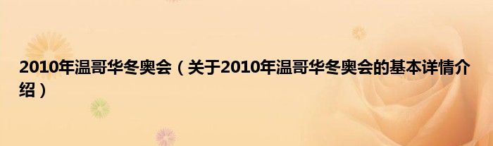 本文关于2010年温哥华冬奥会的基本详情介绍就讲解完毕,希望对大家有所帮助。