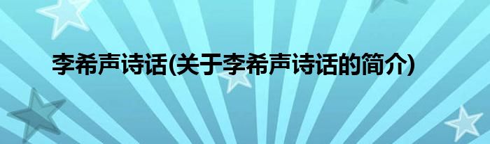本文关于李希声诗话的简介就讲解完毕,希望对大家有所帮助。