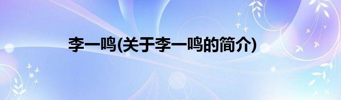 李一鸣(关于李一鸣的简介)