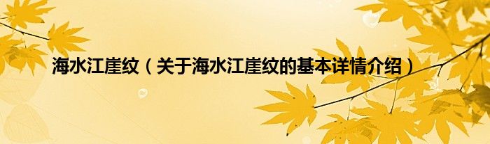 本文关于海水江崖纹的基本详情介绍就讲解完毕,希望对大家有所帮助。
