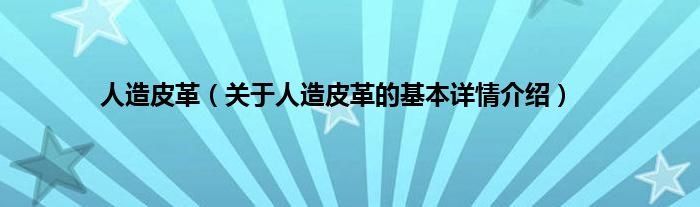 本文关于人造皮革的基本详情介绍就讲解完毕,希望对大家有所帮助。