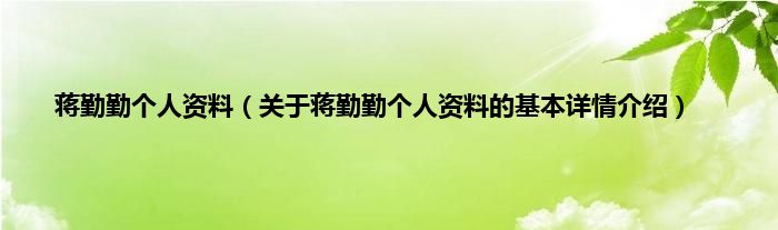 本文关于蒋勤勤个人资料的基本详情介绍就讲解完毕,希望对大家有所帮助。