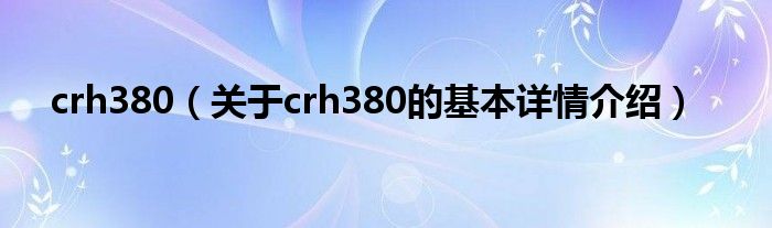 大家好我是小蝌蚪,crh380,关于crh380的基本详情介绍很多人还不知道,那么现在让我们一起来看看吧!