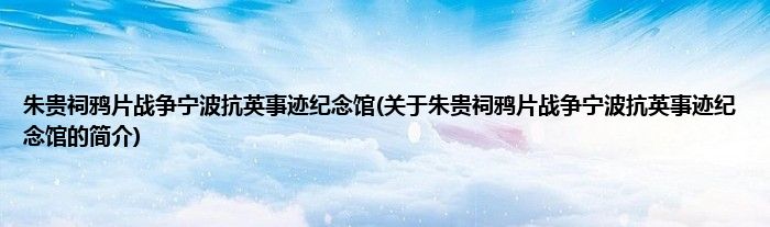 大家好,朱贵祠鸦片战争宁波抗英事迹纪念馆,关于朱贵祠鸦片战争宁波抗英事迹纪念馆的简介很多人还不知道,现在让我们一起来看看吧!
