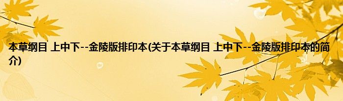 本文关于本草纲目 上中下--金陵版排印本的简介就讲解完毕,希望对大家有所帮助。