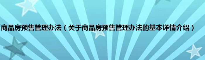 本文关于商品房预售管理办法的基本详情介绍就讲解完毕,希望对大家有所帮助。