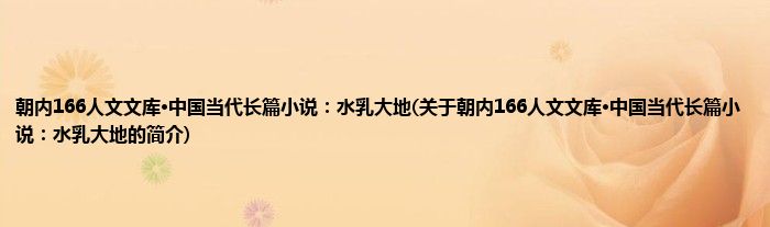 大家好,朝内166人文文库·中国当代长篇小说:水乳大地,关于朝内166人文文库·中国当代长篇小说:水乳大地的简介很多人还不知道,现在让我们一起来看看吧!