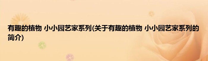 大家好,有趣的植物 小小园艺家系列,关于有趣的植物 小小园艺家系列的简介很多人还不知道,现在让我们一起来看看吧!