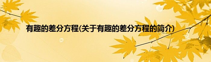 大家好,有趣的差分方程,关于有趣的差分方程的简介很多人还不知道,现在让我们一起来看看吧!
