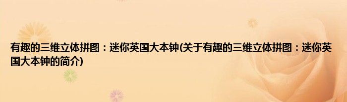 大家好,有趣的三维立体拼图:迷你英国大本钟,关于有趣的三维立体拼图:迷你英国大本钟的简介很多人还不知道,现在让我们一起来看看吧!