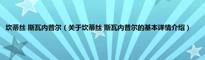 本文关于坎蒂丝 斯瓦内普尔的基本详情介绍就讲解完毕,希望对大家有所帮助。