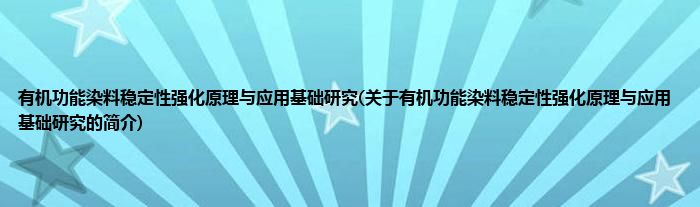 本文关于有机功能染料稳定性强化原理与应用基础研究的简介就讲解完毕,希望对大家有所帮助。