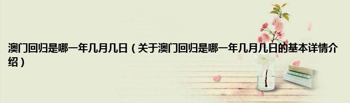 本文关于澳门回归是哪一年几月几日的基本详情介绍就讲解完毕,希望对大家有所帮助。