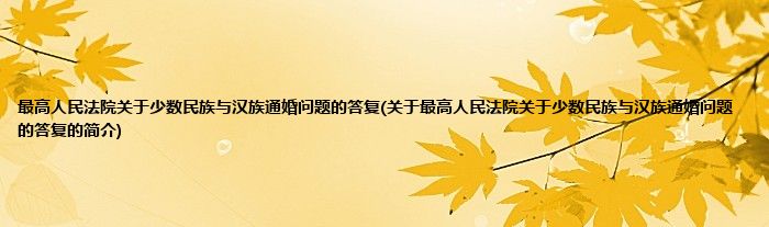 大家好,最高人民法院关于少数民族与汉族通婚问题的答复,关于最高人民法院关于少数民族与汉族通婚问题的答复的简介很多人还不知道,现在让我们一起来看看吧!